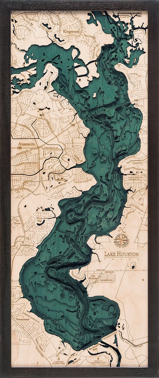 Lake Houston, TX 3D Wood Map | Framed 3D Topographic Wood Chart